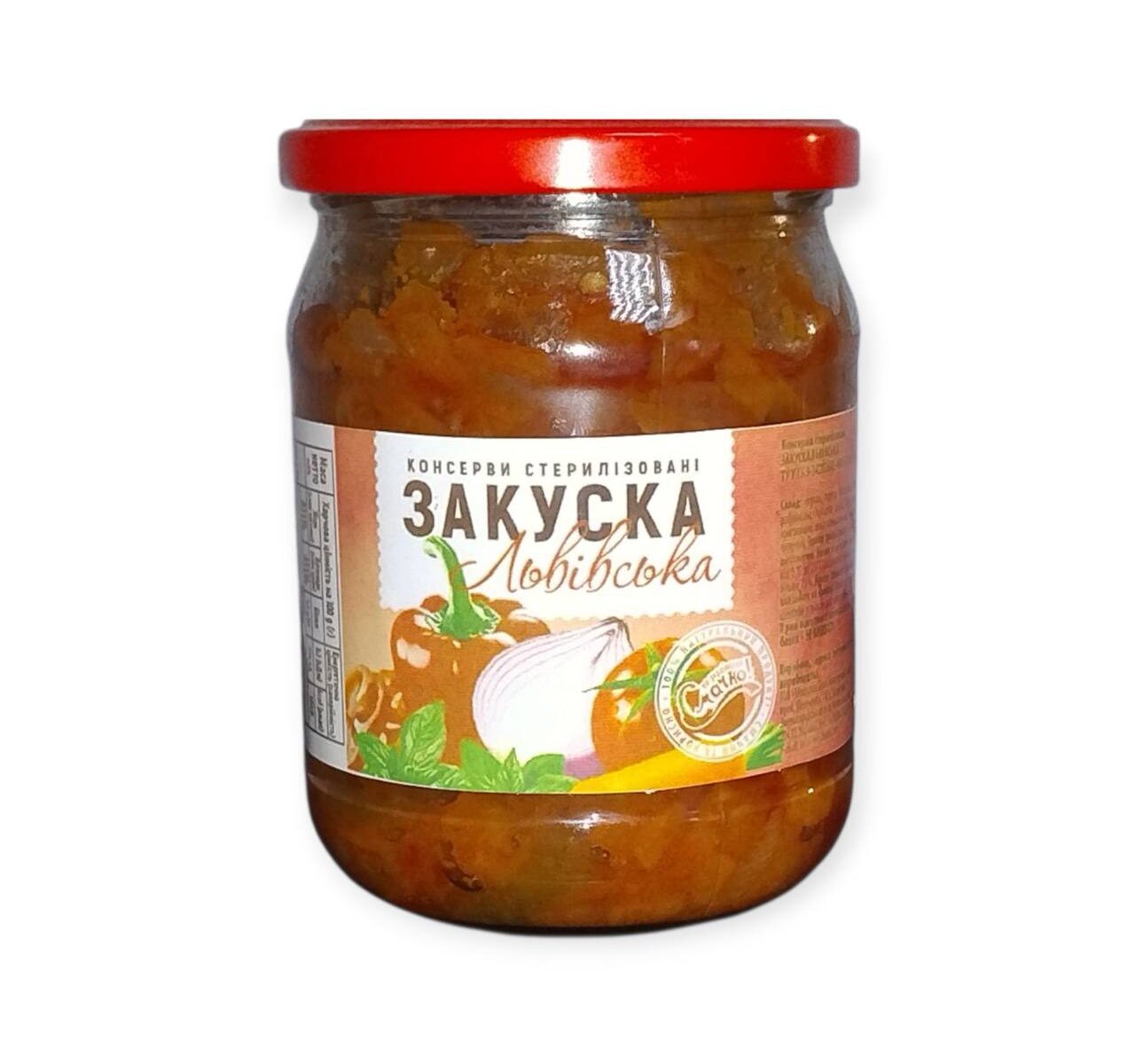 Закуска «Львівська» (460 мл) ароматна, барвиста закуска зі смажених овочів у густому томатному соусі. Морква, болгарський перець і цибуля створюють неповторний баланс солодкуватості й кислинки.